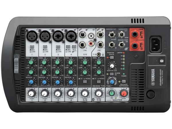 STAGEPAS400BTは前モデルSTAGEPAS400iのUSB端子を取り除き、スマートフォンなどのブルートゥース接続に対応した音楽プレイヤーからワイヤレスでストリーミング再生に対応しました。