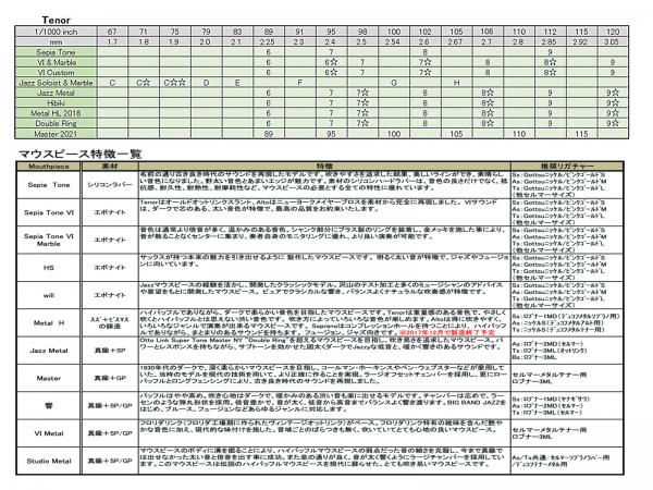 ▼セピアトーンVI(ヴィーアイ) テナーサックス用のラインナップ