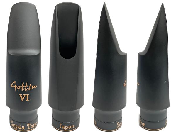 Sepia Tone VI の VI は Vintage の VI です。 このモデルはGottsuのスタンダードなモデルで日本で一番人気のあるモデルのようです。音色の特徴として渋く響きがあり、吹きやすいため演奏者の好みの音色が出るマウスピースです。