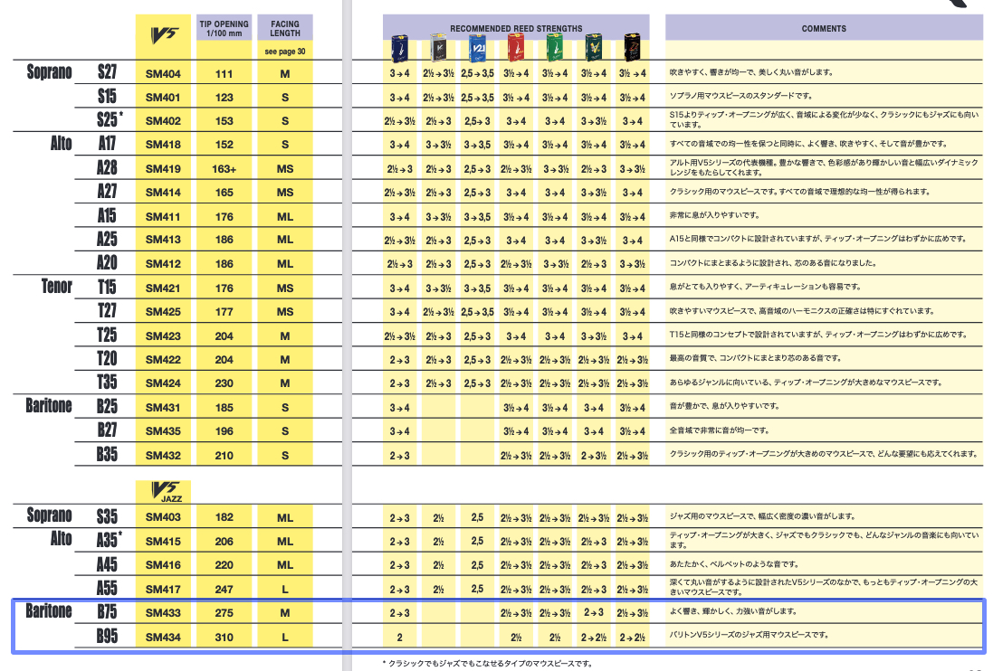 B95     SM434     310     L  バリトンV5シリーズのジャズ用マウスピースです。