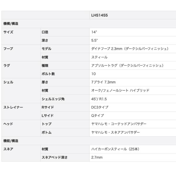 YAMAHA ヤマハ LHS1455UCS Live Custom Hybrid OakLive Custom Hybrid Oak オーク/フェノールシート 14×5.5 UZUチャコールサンバースト (UCS)
