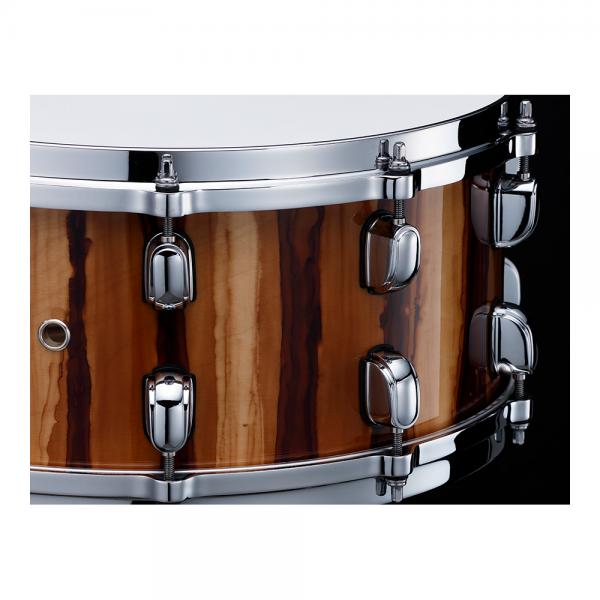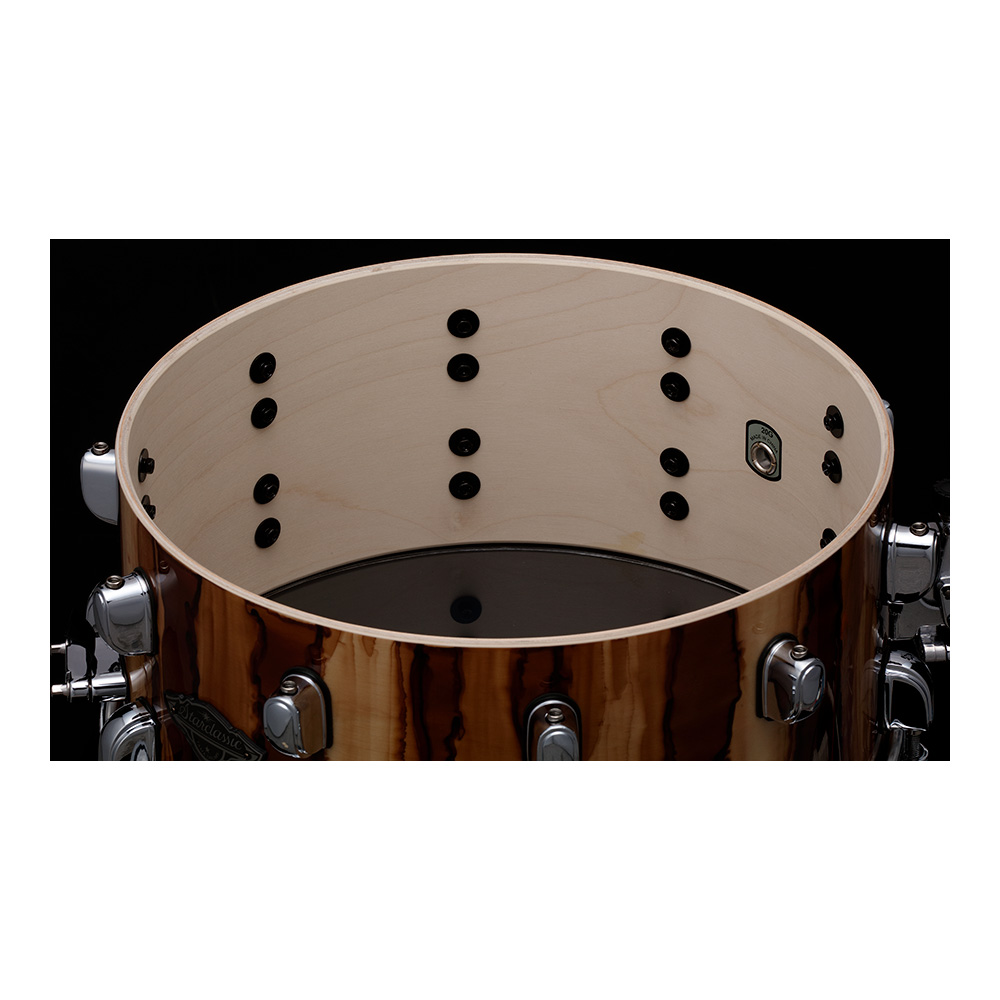 メイプル材の持つウォームで音抜けの良いシェル鳴りに、バーチ材のはっきりした音像とソリッドなアタックを加えることで、バランスの取れたクリアでパンチのあるサウンドを実現します。