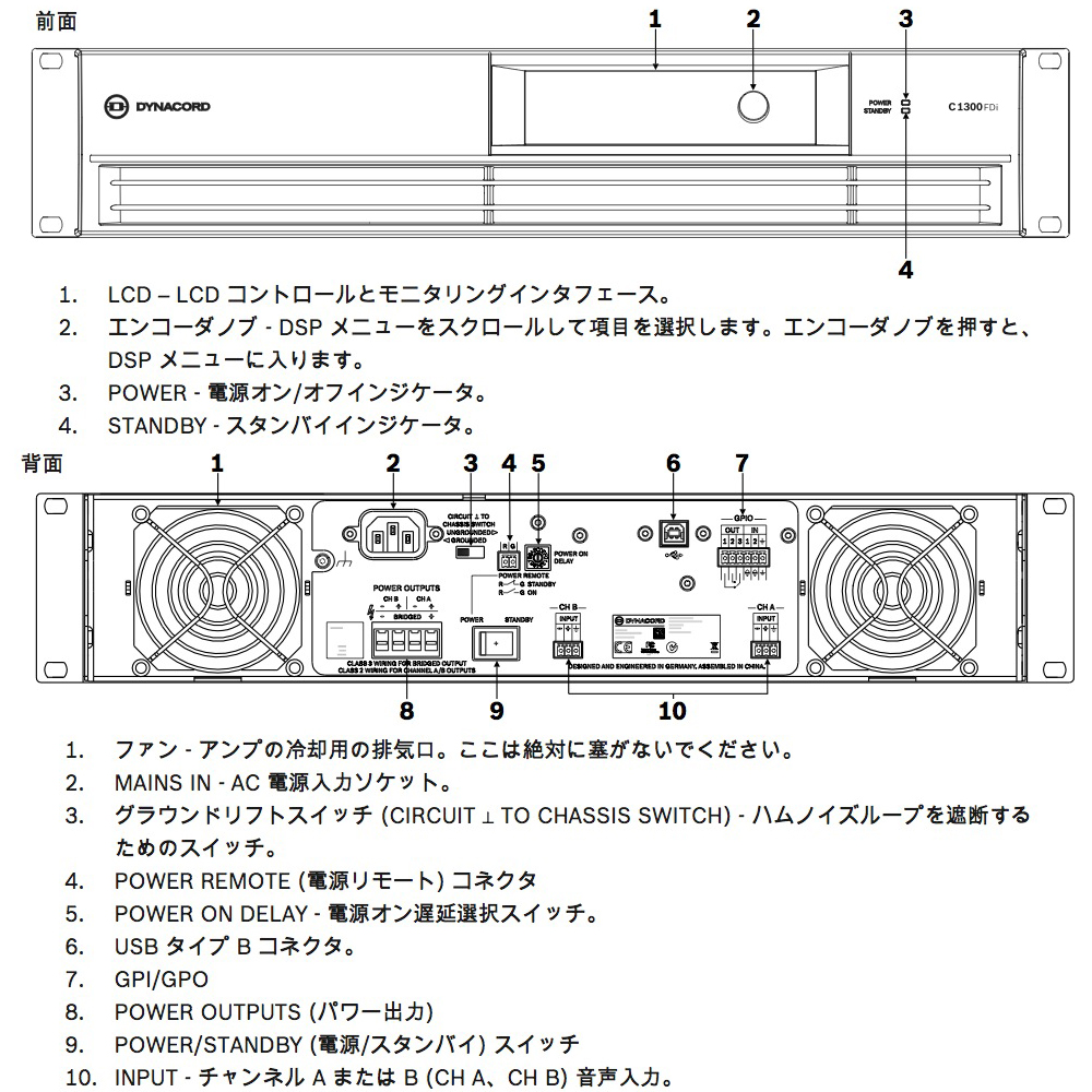 DYNACORD ダイナコード C1300FDi DSP搭載 固定設備向け パワーアンプ 350W+350W (8Ω) /ハインピーダンス 600W (70V)