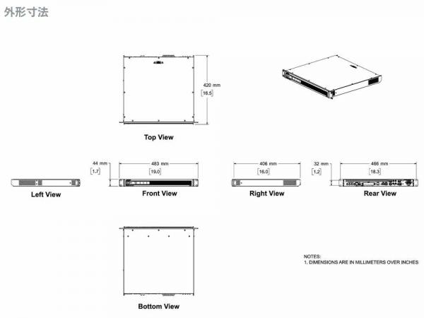 44mm×483mm×414mm(1.7”×19.0”×16.3”) |
