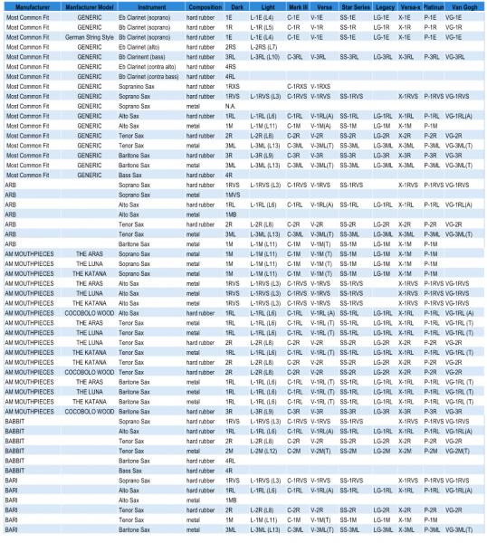 アルトサックス用としては主に3種類(ラバー用 1RL、メタル用 1M、1MB)のサイズございますが、これが絶対とは限りません。 また各種マウスピースメーカーでもシリーズによってサイズが異なっており、それはもはやラバー用かメタル用かだけではなくなってきています。