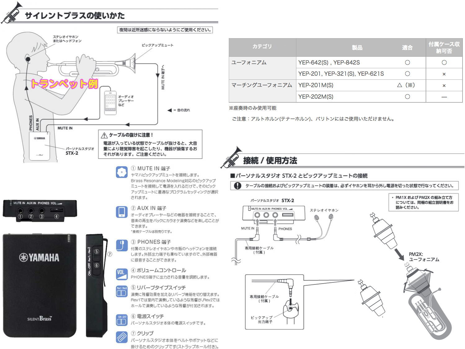 ・PM2X...Brass Resonance Modeling対応/ピックアップ端子:ミニフォンジャック/内蔵マイク:エレクトレット・コンデンサーマイク/消音程度:-25dB~-35dB/サイズ:210 × 395mm/重量:750g