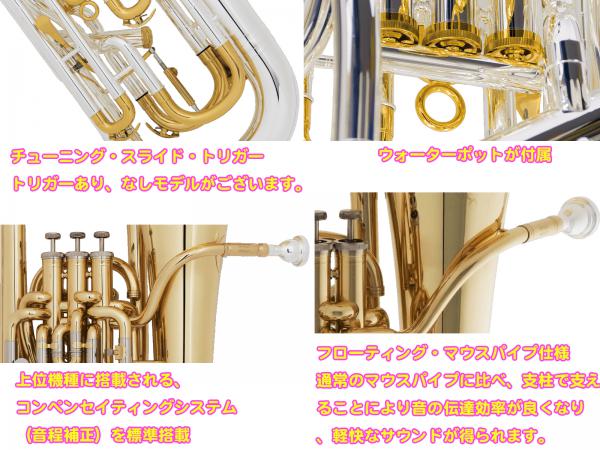 チューニング・スライド・トリガーとは...こちらはトリガー無しのモデルです。トリガー標準装備は少し値段が高くなりますが、さらなる音程の微調整ができます。
