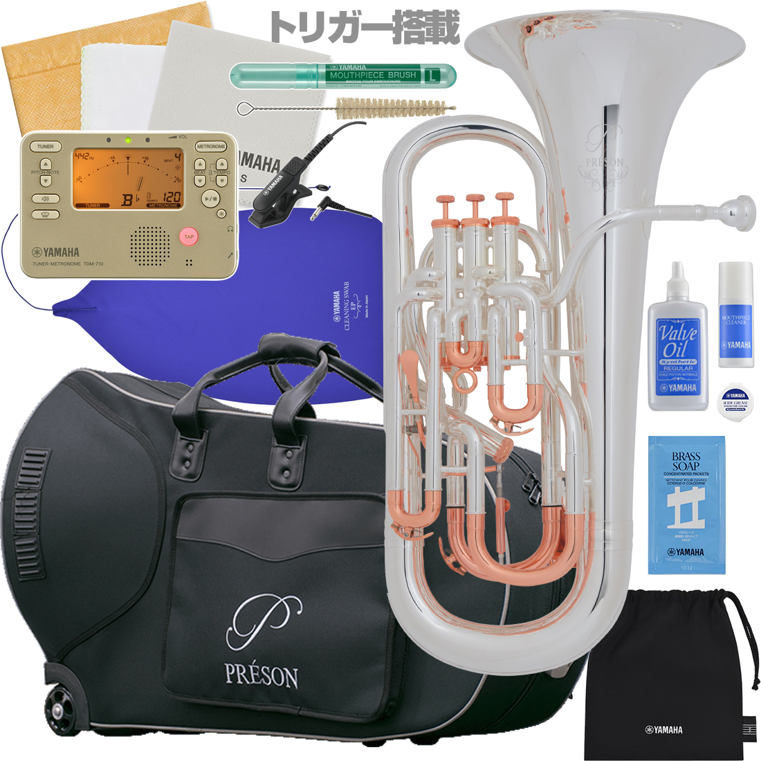 PRESON プレソン PR3300SP ピンクゴールドトリム ユーフォニアム 銀メッキ トリガー搭載 4ピストン コンペ付 PR-3300SP セットC 北海道 沖縄 離島 代引き不可Euphonium PR3300SP サイドアクション BACHマウスピース 5G付属 4ピストン コンペンセイティングシステム
