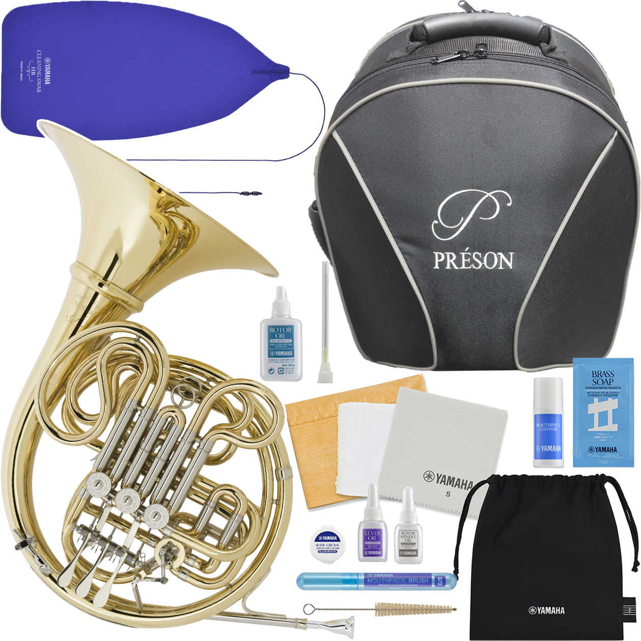こちらは大人気フルダブルフレンチホルンです。プレソンは管楽器大手の代理店メーカーが日本に輸入しているブランドです。製品モデルはヤマハを意識した仕様やラインナップとなっておりますが、価格はヤマハより安いです。当然ながら価格は品質に比例するところもあり、海外製と日本の精度やつくりの粗さには差がある部分がありますが高額な楽器ともなると、その価格差は10万円近くまでなるわけです。品質の良い楽器を手にするプロフェッショナルの方々のご意見も大事ですが全ての方が同じ状況で同じ目的で演奏を楽しむわけではありません。楽器のご購入は自分に合った楽器を選ぶことが重要になるのです。何も情報なく、ヤマハでただ一番安いものを買っても思っていた仕様ではなかった、なんてことにならないように楽器のことを十分理解して購入しましょう。