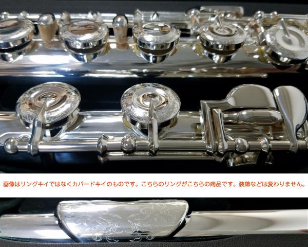 Dolce ( ドルチェ ) オフセットリングキイ フルートのキイにはカバードキイ(ジャーマンスタイル)とリングキイ(フレンチスタイル)の2種類があり、それぞれに特徴があります。初心者の多くはカバードキイを使用していると思います。リングキイは指を押さえるキイカップがリング状のため、孔を押さえるのに技術が必要ですが、指先に空気の振動を直接感じることができるため、細やかな響きのニュアンスをコントロールすることが可能です。指をずらすなどの操作で音程の自由度が高いです。難易度はあがりますが抑揚がある豊かな演奏を奏でる一歩上を目指す方におすすめです。