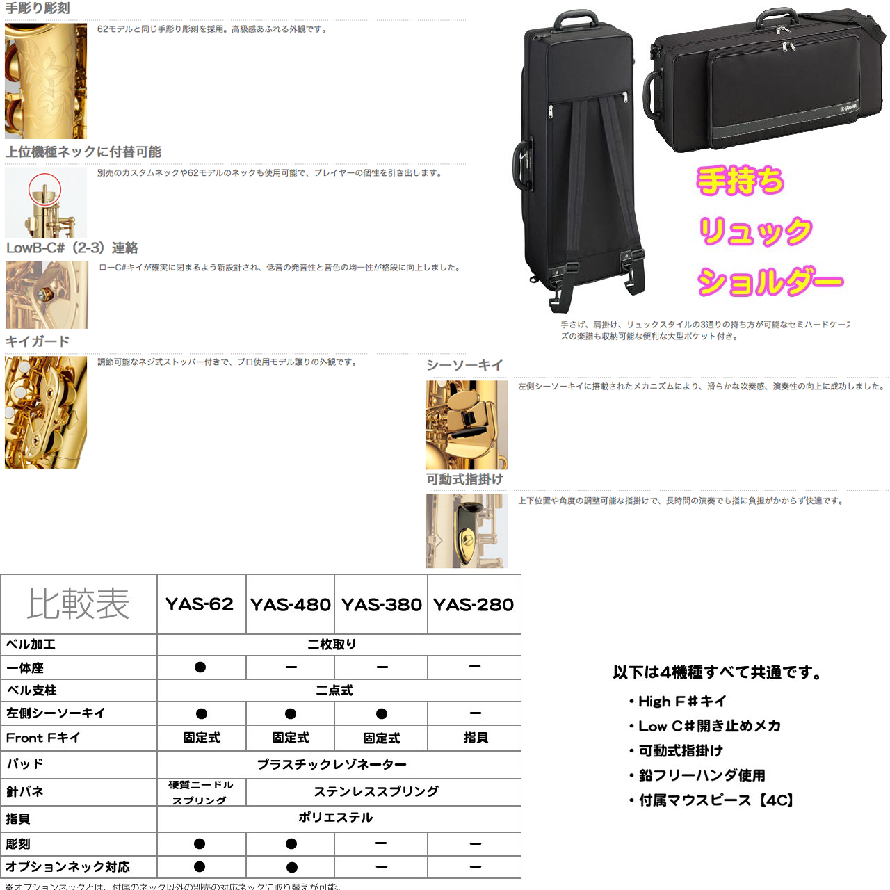 YAS-480 アルトサクソフォン 正規品 YAS-480-01 ヤマハ管楽器 安心アフターサポート対象 オプションネック対応 楽器 ケース マウスピース AS-4C Alto saxophone gold