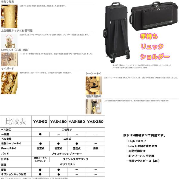 ※YAS-62(S)/YTS-62(S)は2021年11月時点の現行モデルおよび一部の旧モデルに互換性があります。