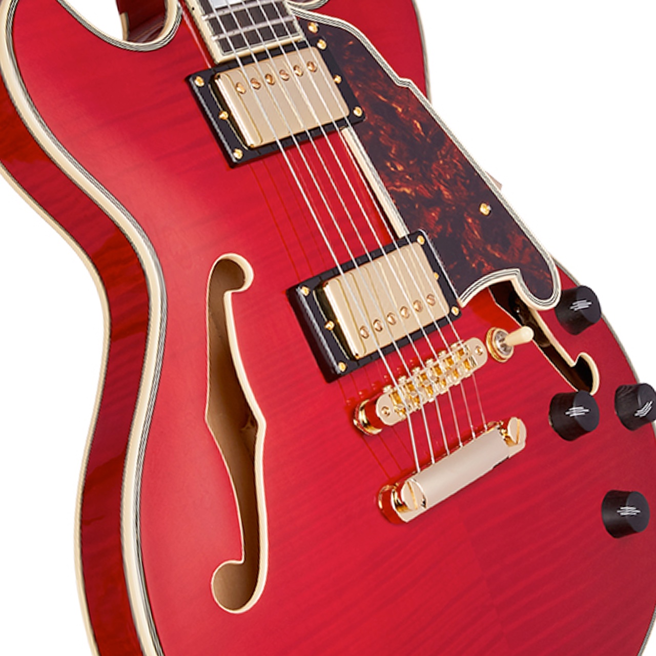 セミアコの定番カラーのチェリーはやっぱり飽きのこないスタンダードなルックスです。ハードケースも付属してこのコストパフォーマンスです。