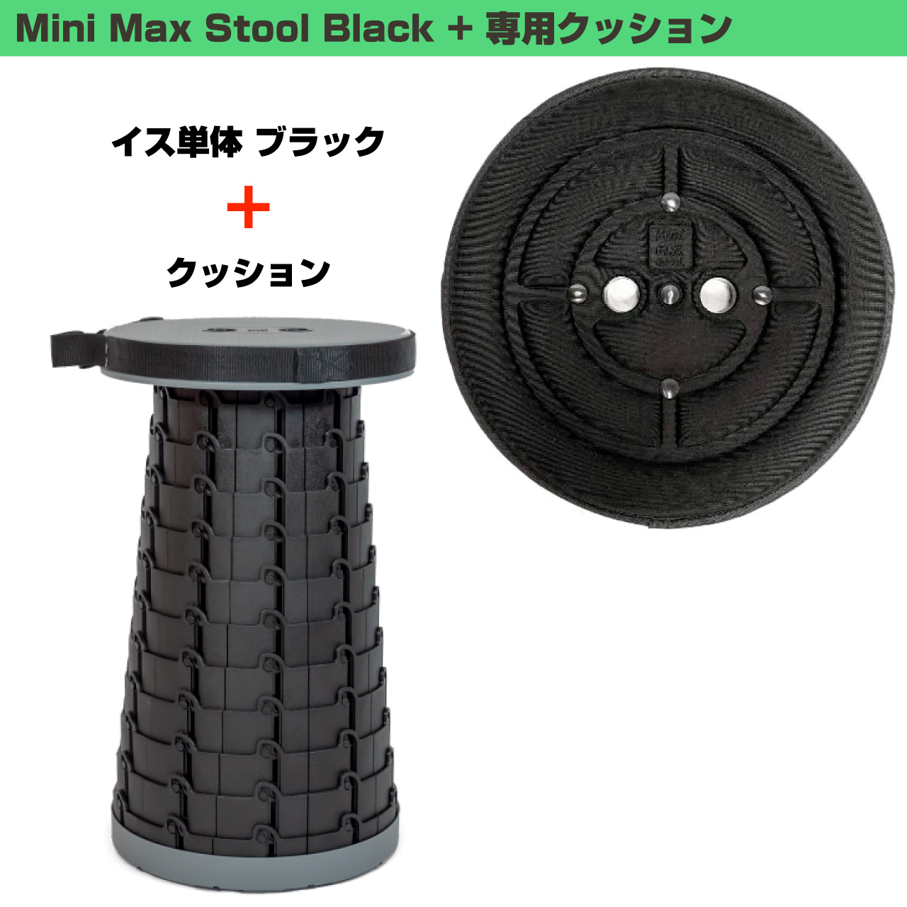 MiniMax Stool 即納可能 折りたたみイス + クッション 高さ12段階 約6.5cm~約44cm 耐荷重200kg ミニマックススツール 黒