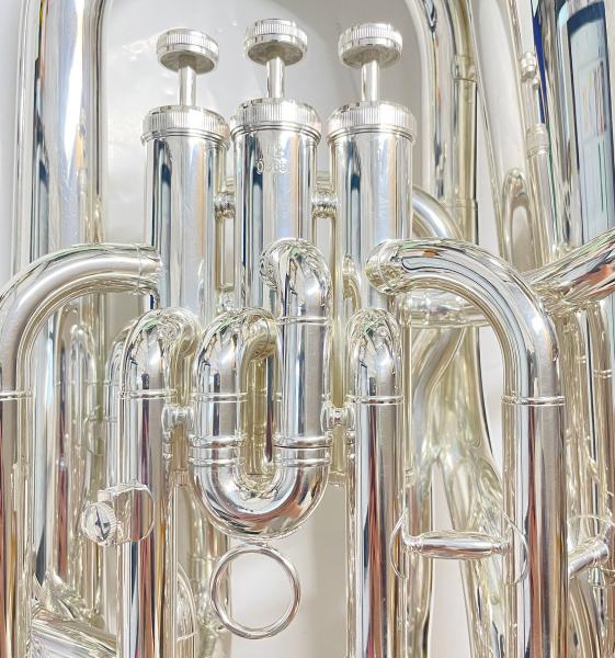 ピストン式、第4バルブは左手操作のサイドアクション。演奏性が良いと人気の商品です。柔らかい音色が人気のユーフォですが、シルバー メッキはゴールドカラーに比べて塗装の違いからやや落ち着きのある音色になります。楽器自体の特性が直接表れ、よりきめ細かなニュアンスが表現できるのはシルバーならではではないでしょうか。マウスピースは太管です。専門のメーカーのものに替えたりすることで吹き心地や音色もかわり、そこもまた楽しいものです。ソロ楽器としても魅力のある楽器。ご自分に合ったセッティングを追求してみてください。シルバー メッキは雑誌「ブラストライブ」にも掲載され、銀 メッキでありながらこの価格でこのコストパフォーマンスの良さが一躍話題となりました。誕生日、クリスマス、バレンタイン、入学 進学 のお祝い、贈り物、プレゼントにも喜ばれますよ。