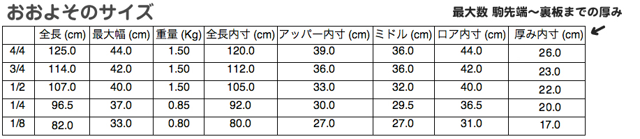 ■サイズラインナップ:4/4サイズ、3/4サイズ、1/2サイズ、1/4サイズ、1/8サイズ