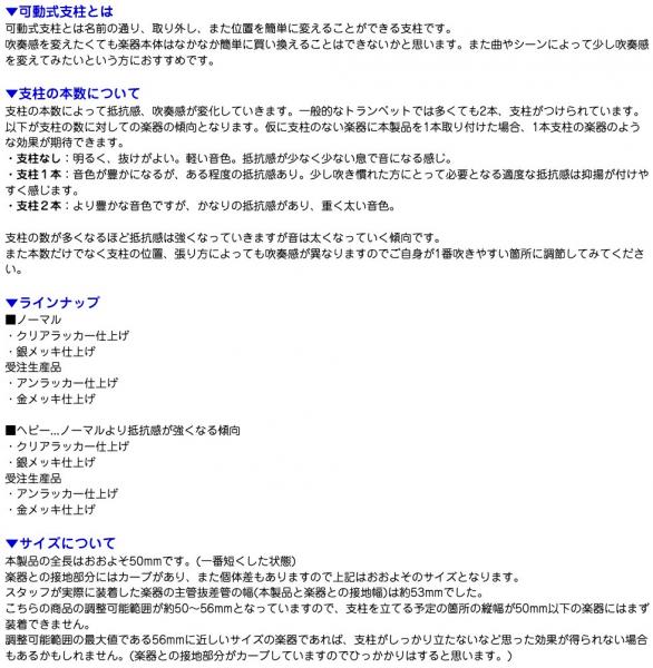 支柱の本数によって抵抗感、吹奏感が変化していきます。一般的なトランペットでは多くても2本、支柱がつけられています。