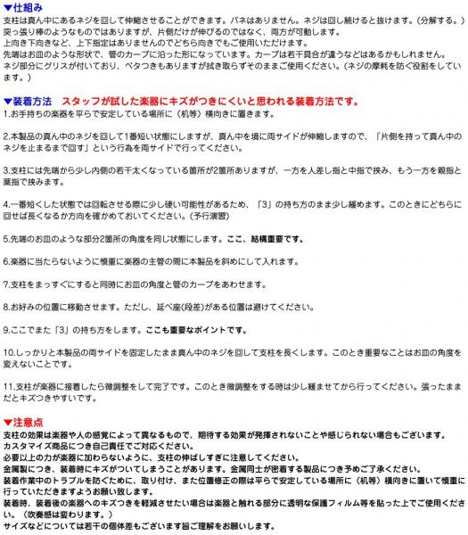 調整可能範囲の最大値である56mmに近しいサイズの楽器であれば、支柱がしっかり立たないなど思った効果が得られない場合もあるかもしれません。(楽器との接地部分がカーブしていますのでひっかかりはすると思います。)