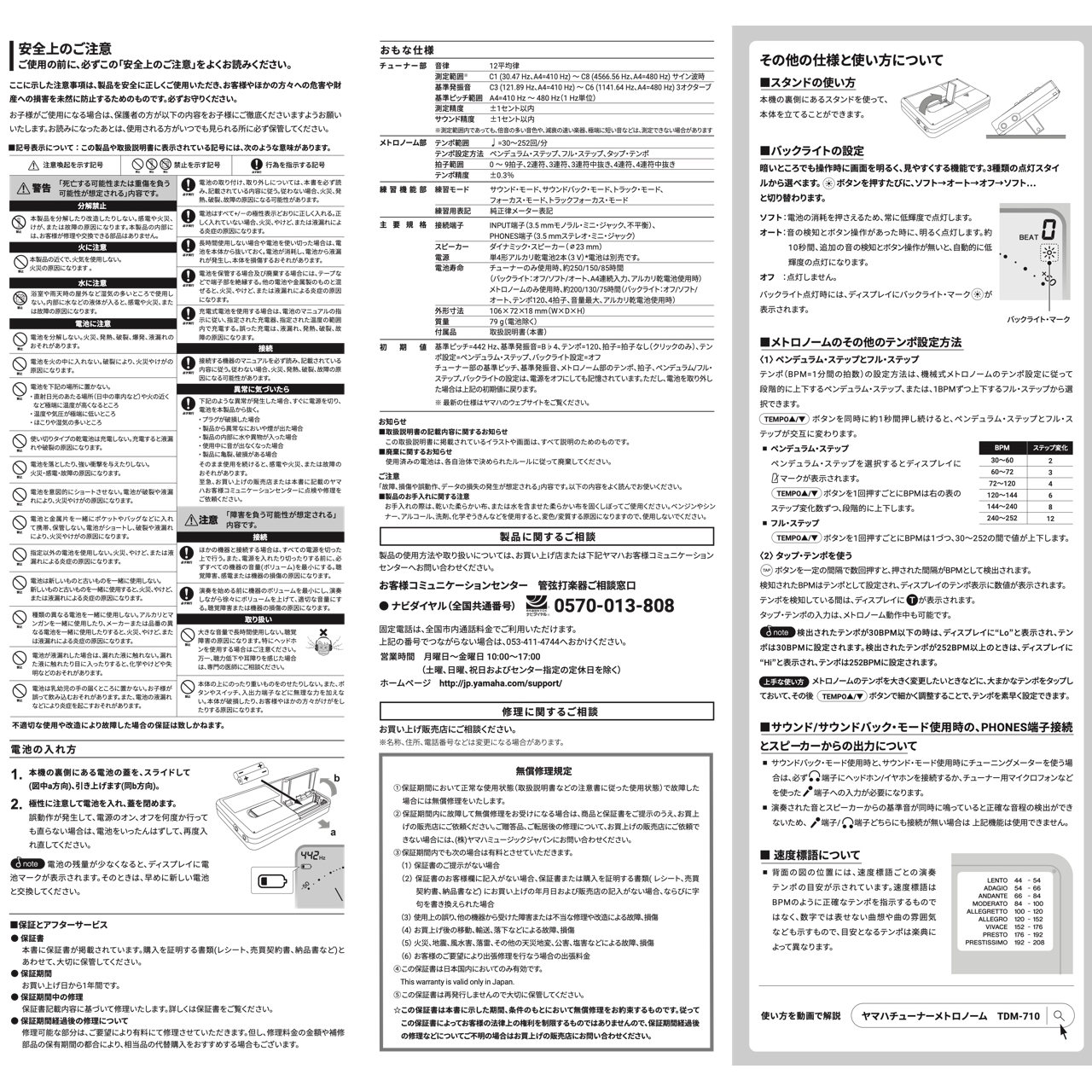 YAMAHA TDM-710 Tuner-Metronome ヤマハ チューナーメトロノームTDM-710GLMはチューナーメトロノームTDM-710GLとチューナー用マイクTM-40BKが1つになったパックです。中身は同じです。 チューナーメトロノームは演奏の魅力を最大限に引き出すために、音程感とテンポ感の向上をサポートするアイテム