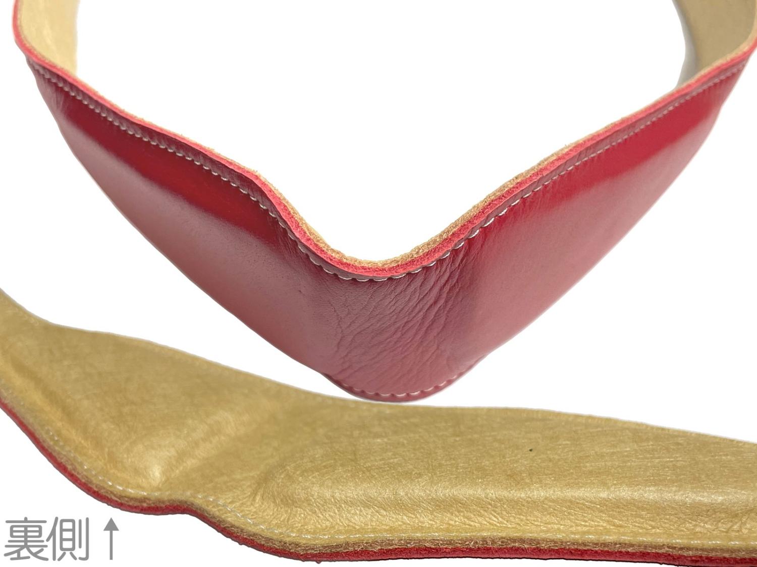 2:ネックパッド...カラー革パッド スタンダードタイプ、フレイムレッド(APAD-N-FRD)※天然素材を使用しています。バラ傷や色ムラは革本来が持っている素材の特性ですので予めご理解いただきますようお願いいたします。色落ちや色移り、アレルギーなどには責任を負いかねます。