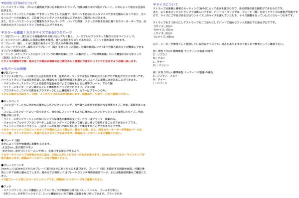 また、よくあるネックストラップでは難しいですが、バードストラップでは、ブレード(紐)を切ってサイズの変更が可能ですので、サイズにご不安がある方はワンサイズ上のサイズを選んでいただき、サイズ調整を行っていただくのも一つの手です。
