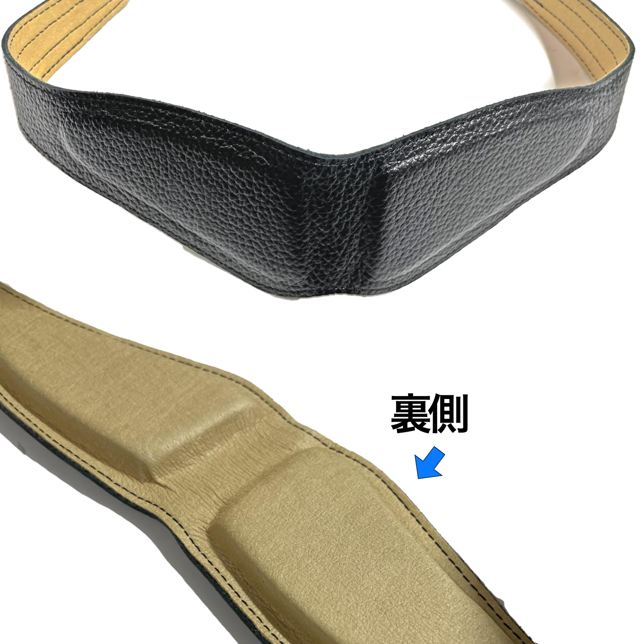 2:ネックパッド...スタンダードタイプ、ブラック、革製 ※天然素材を使用しています。バラ傷や色ムラは革本来が持っている素材の特性ですので予めご理解いただきますようお願いいたします。色落ちや色移り、アレルギーなどには責任を負いかねます。