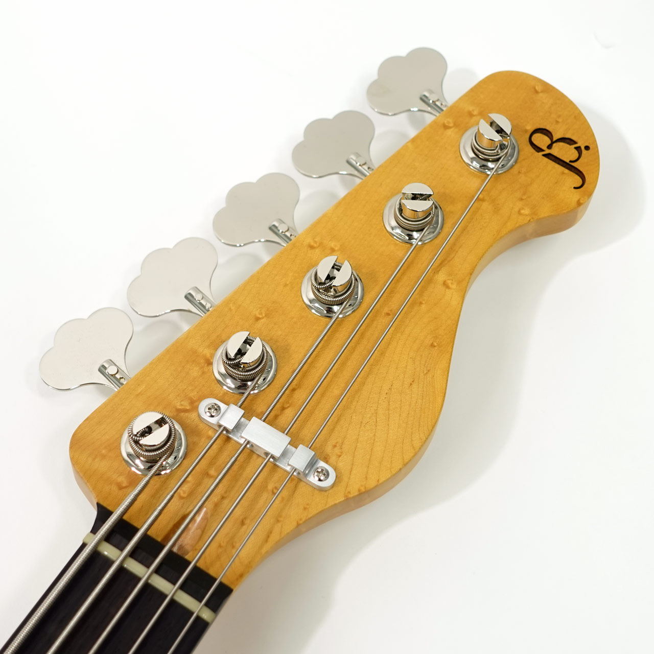 鳥眼杢とも呼ばれるネックはルックスの豪華さだけでなく剛性にも優れており、硬質なネックはストレートな鳴りを引き出します。
