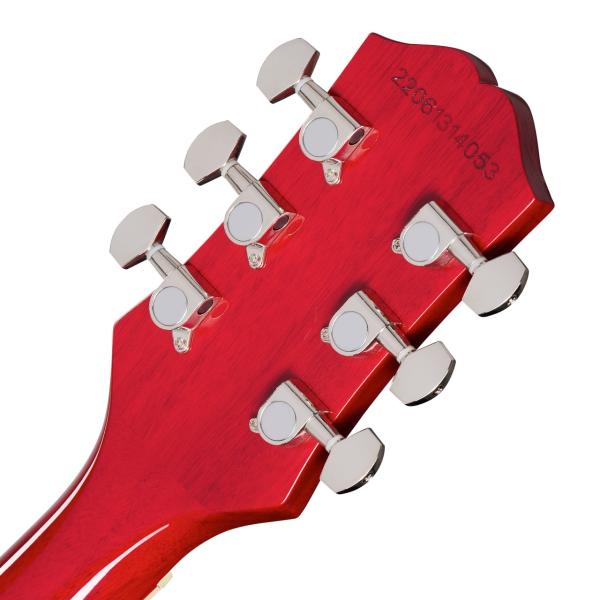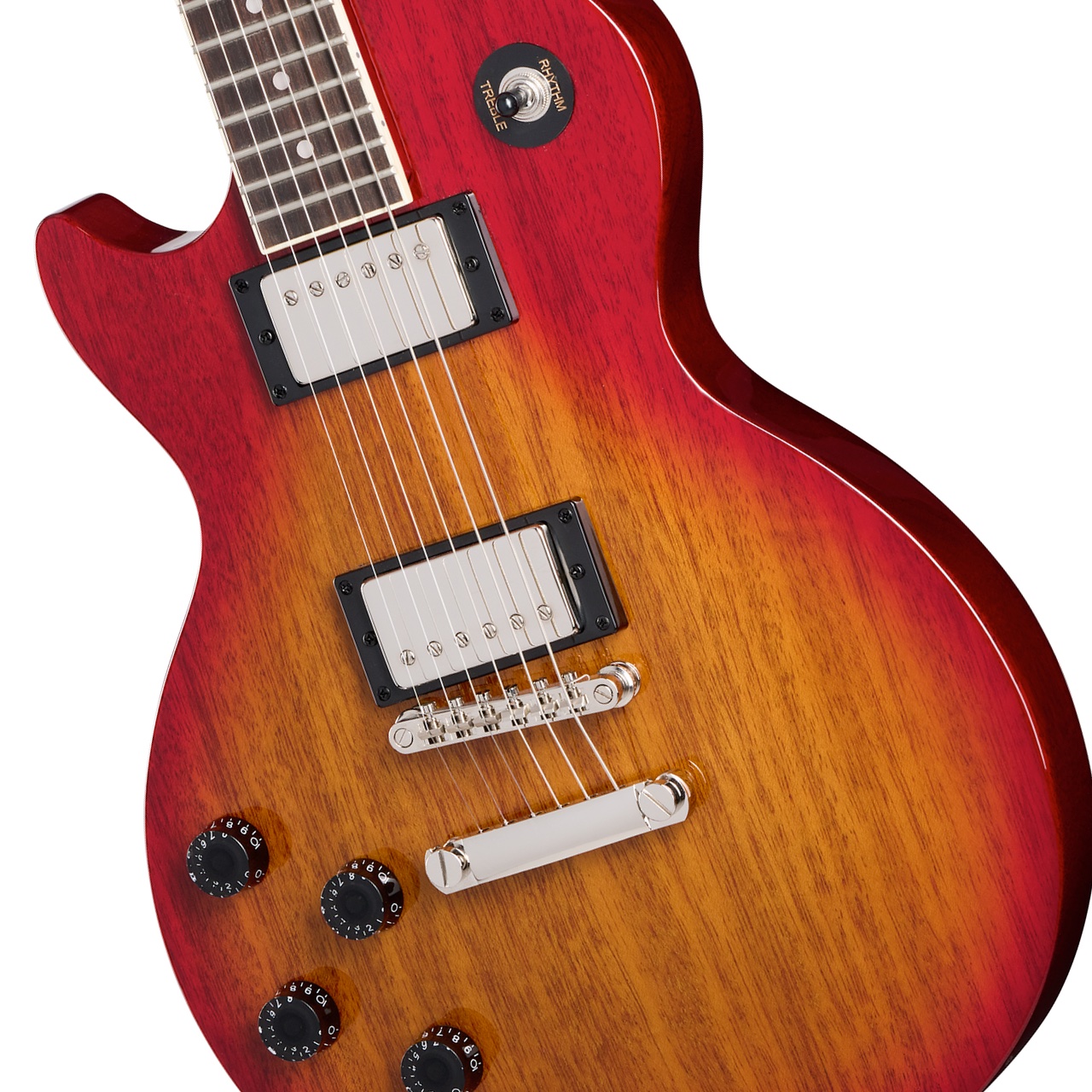 ボディバインディング無しやドットポジションマークながらクラシックな雰囲気を漂うわせるレスポールシェイプに美しいチェリーサンバーストカラー。