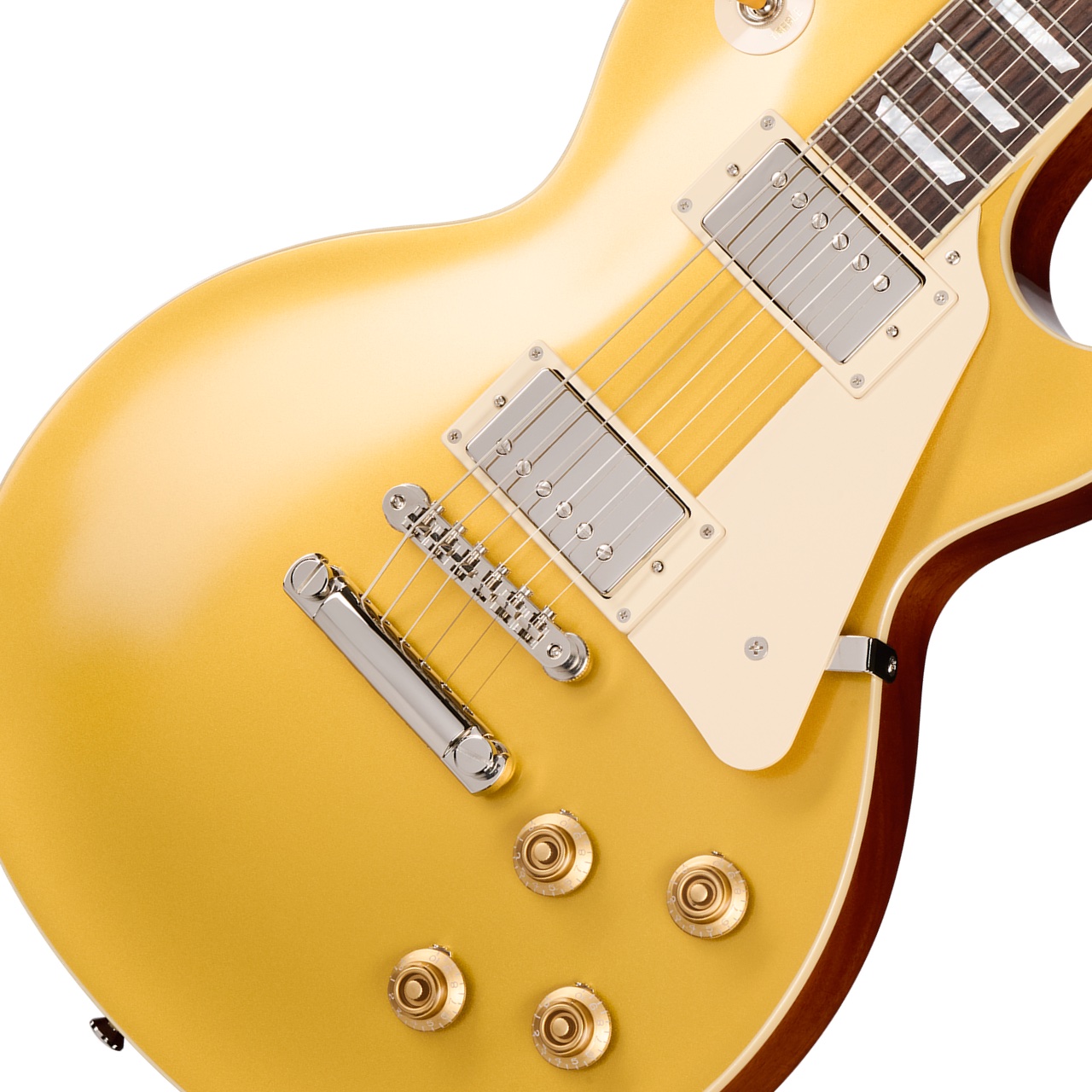 1953年後半にレスポール・カスタムで採用され、次いで1955年後半からレスポール・ゴールドトップでも追随することとなったABR-1 Tune-O-Maticブリッジとストップバー・テールピース。そこに2基のハムバッカーが合わさることにより、それ以前のラップアラウンド・ブリッジ/テールピースやP-90ピックアップを搭載したモデルとは一線を画す、今なお多くのプレイヤーに愛される仕様となりました。これにより、Les Paulは本物のロック・アイコンとしての地位を確立しました。