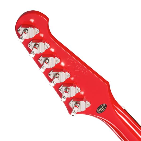 1963 Firebird Iは、ヴィンテージ・ファイヤーバードの仕様を忠実に再現しながらも、手の届きやすい価格を実現しました。9プライのマホガニー&ウォルナットのスルーネック構造に、マホガニー・ボディウィングを組み合わせ、優れたサステインとレスポンスを実現しています。ヘッドストックにはKluson製プラネタリーギア・バンジョーチューナーを搭載し、ブリッジにはWraparound Lightning Barを採用。ストリングのテンションを最適化し、豊かな鳴りを生み出します。