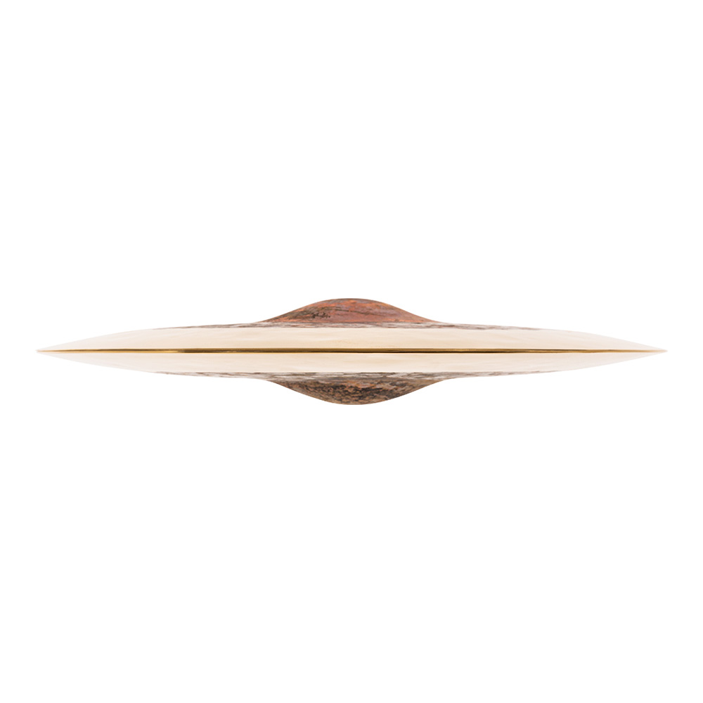 トルコ製の B20 ブロンズからハンドハンマーで丹念に成形され、カップ部はロウ、エッジのみ細いブレードでレイジングされ鮮やかなブリリアント・フィニッシュに仕上げられます。サウンドは見た目通り、トラッシーで土っぽい低音から始まり、爆発的な煌めきのフラッシュでフィニッシュします。