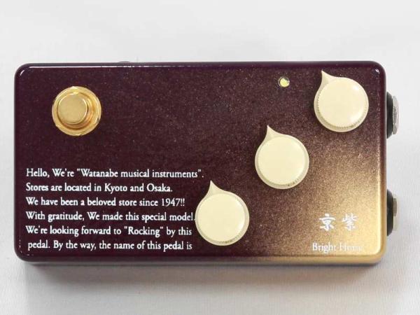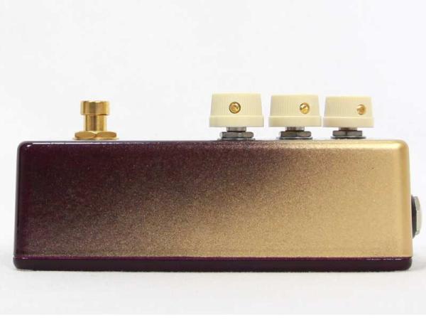 ビルダー様との幾重にも渡る話し合いと試行錯誤の上、完成した見事なグラデーションのオリジナルデザインは、京都に本社を置くワタナベ楽器店ならではの『京紫』を基調とし、フットスイッチにもゴールドパーツを使用することで、上品で雅なペダルに仕上がっております。