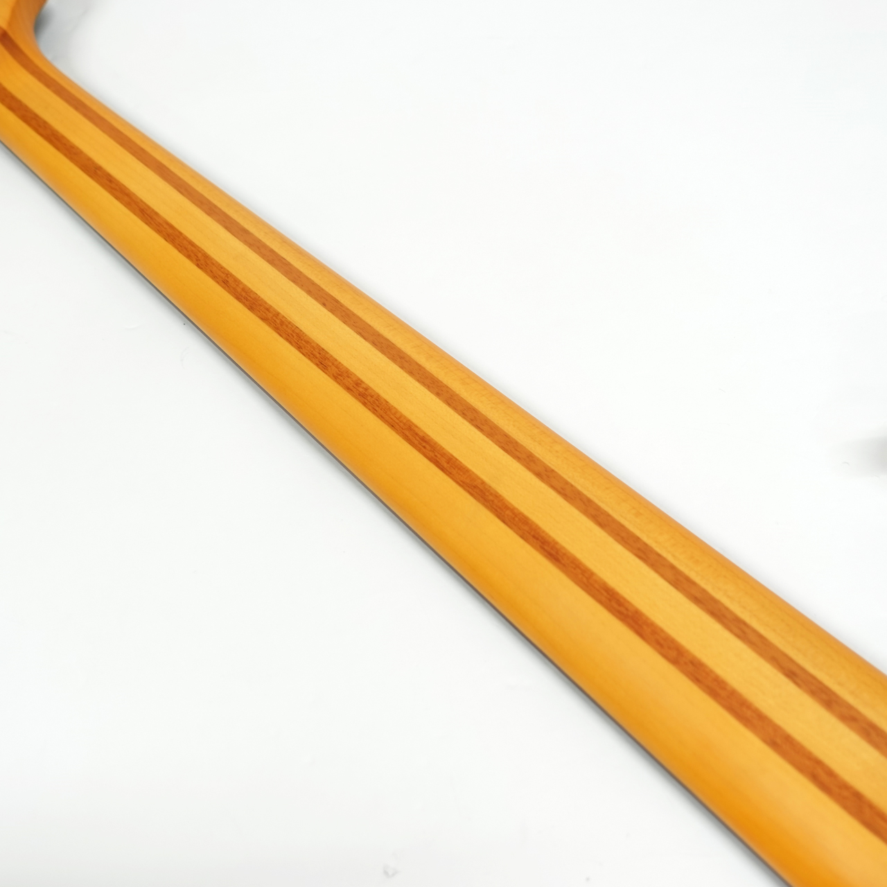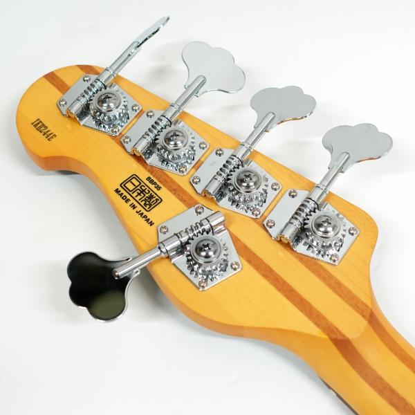 新BBシリーズは、アルダー/メイプル/アルダー3プライのボディ構造。両サイドのアルダーに挟まれた硬質なメイプル材が、中音域を豊かにし、よりバンドのサウンドに溶け込む胴鳴りを実現。また、ボディ材にメイプルを使用することで、ネックのメイプル材と直結した音の伝達が可能となり、ボディとネック間の音のロスを軽減し弦振動を確実に受け止めます。
