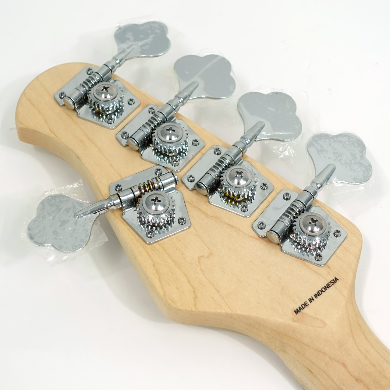 バスウッドボディにハードメイプルネック、メイプル指板。