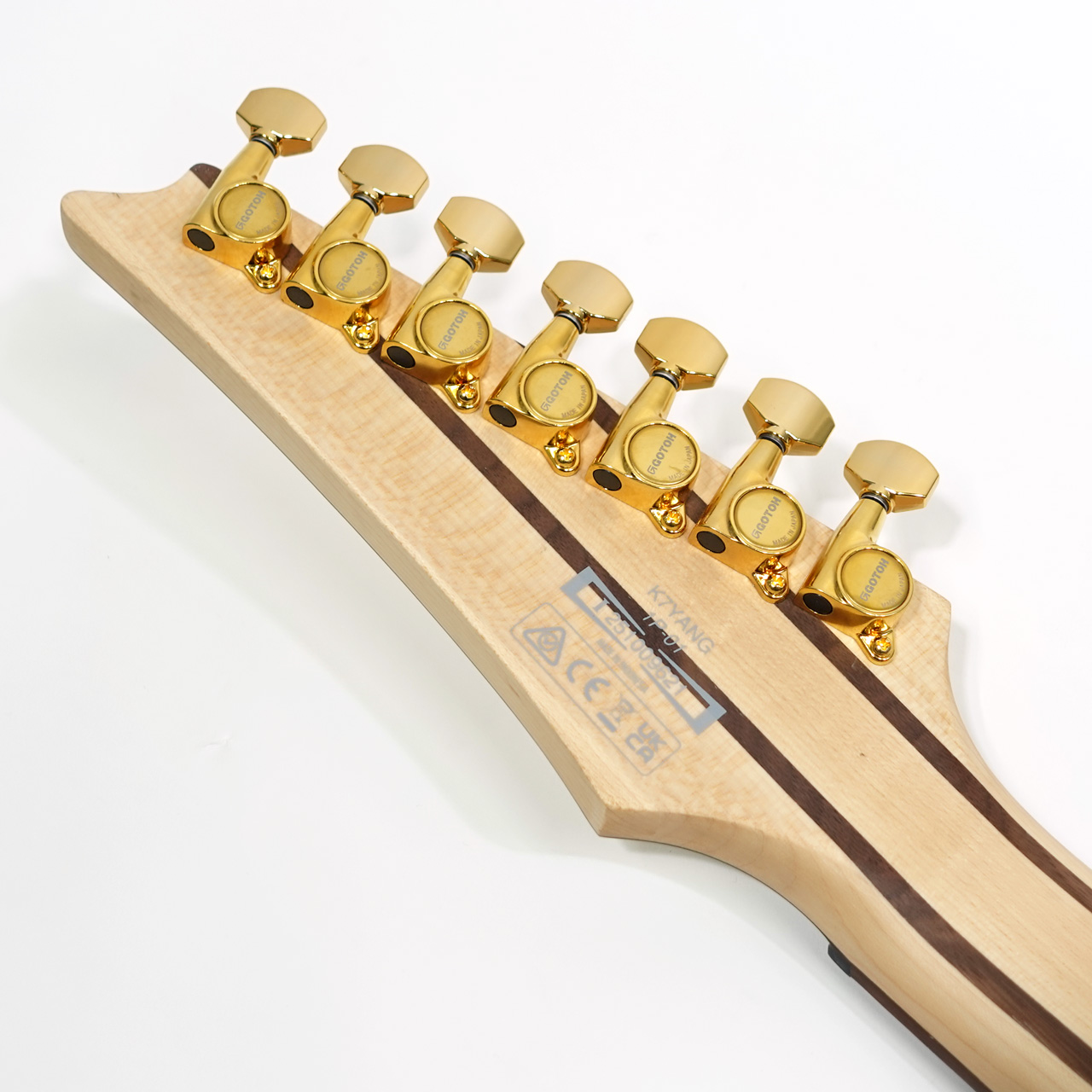 DiMarzio Blaze ピックアップを搭載し、中音域をスクープし、高音域と低音域を強調した設計にすることで、明るくクリアな7弦サウンドを保ちます。