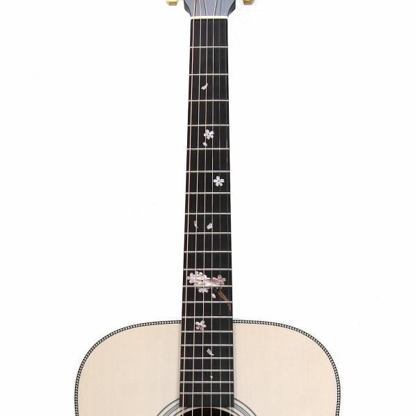 指板には桜の花びらを模ったインレイが美しく彩ります。通常のポジションマークをもつギターから持ち替えても違和感が少ないよう、桜の花びらの配置を考慮しています。