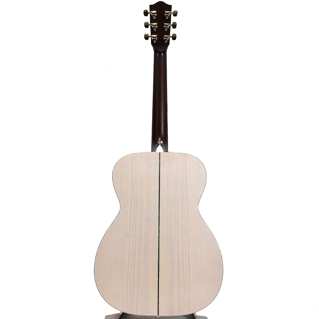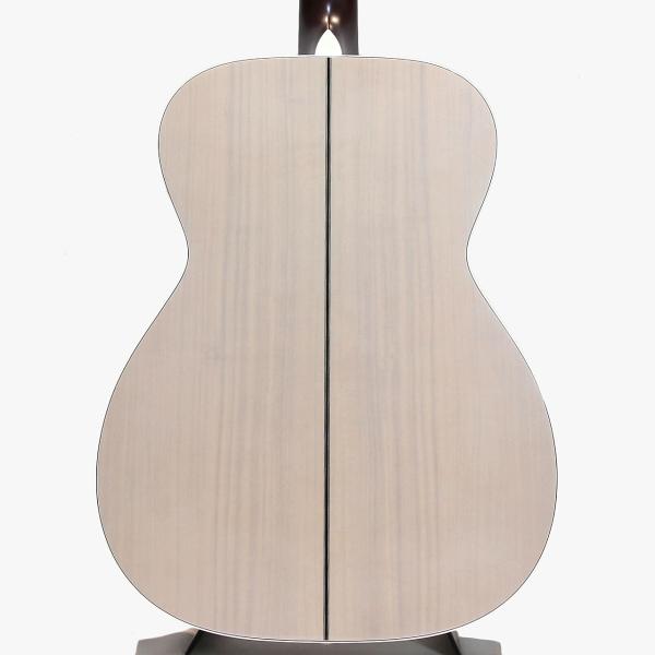Headwayマスタービルダーの百瀬恭夫が1934年製のビンテージギターのブレーシングを研究し、独自に発展させたブレーシングを継承。Xのクロス位置がサウンドホールに近いセミフォワードシフトで新品時より低音の反応がよく、ボリュームのある鳴りを持ちます。フォワードシフトよりも5mmほどブリッジ寄りになっていることにより、トップ板の安定性も考慮された設計が行われています。