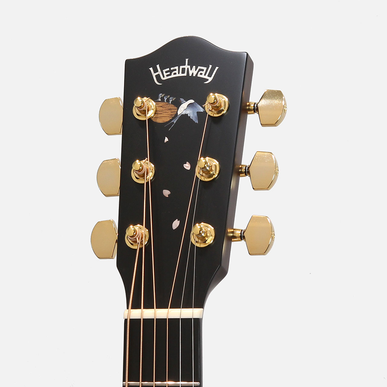 ヘッドには日本人にとってなじみの深いツバメをデザインのモチーフ。Headwayともゆかりのある鳥であり、マスタービルダーの故・百瀬恭夫は毎年工房にやってくるツバメを楽しみにしていました。師への想いと、日本の奥ゆかしい風景に焦点を当てたデザインにより、ギター全体を通してストーリーを感じさせる一本です。
