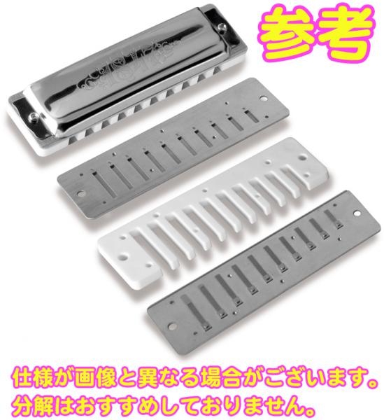 ・ボディ・マウスピース ・リードプレート 気密性を高めエアロスを最小限に抑える、平滑で精度良く製作、組み上げられるリードプレート。素材は洋銀製です。多くのブルースハープが真鍮(ブラス)を使用しておりますのでこれも特徴の1つでもあります。