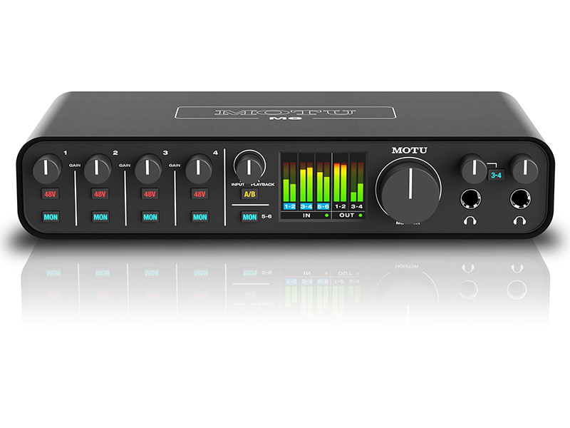 M6は、現在トップセラーのM2 / M4の音響スペックを備え6in / 4outの仕様のうちモニターAB出力切替への対応や、出力ソース切替にも対応するヘッドホンアウト、4機のゲインコントロール搭載マイクプリアンプの実装に加えてUSB-Cバスパワー駆動のほかスタンドアローン駆動、コンパクトなミキサーとしての機能も持ち合わせて、より一層スタジオやステージ、配信環境に利便性と高音質をもたらします。