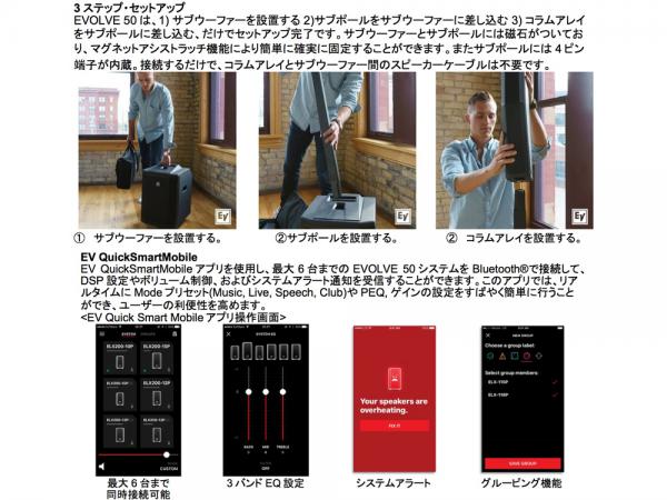 ◆ ついにEVからも!ポータブルの利便性と1000Wの本格サウンドを持ち備えたコラムスピーカーシステム エヴォルブ50