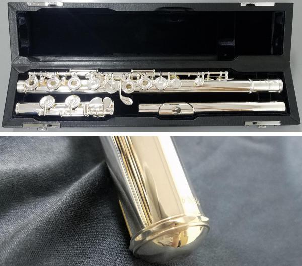 口元に近い部分が一番音色を左右すると言われ、ライザー、リップ、頭部管、本体、キィと順に銀の部分が増え、さらに銀の純度などでも値段が変わるのがフルートの価格設定の特徴です。銀製になることで音の深み、柔らかさのある音色に。抵抗感も増しますので初心者には銀を使用しないものもおすすめ。(吹きやすく明るい音色。)