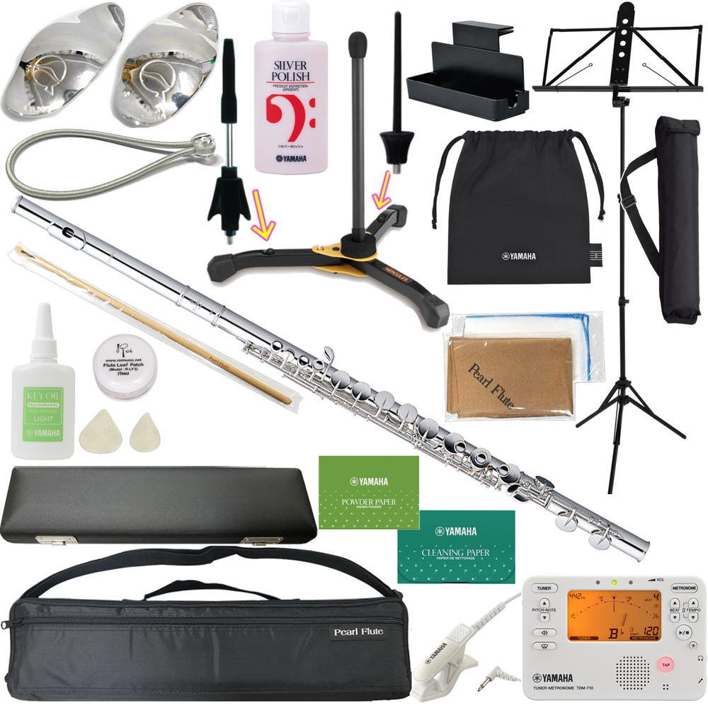 ちなみにヤマハのアルトフルートはEメカが付いておらず3オクターブ目の高いミ(H音)を綺麗に鳴らすのにはコツが必要です。 フルートは主に洋白/洋銀/銀を素材としており、金や木のほかアルトフルート/バスフルートではサックスやトランペットと同じ真鍮という素材が稀に使われます。 ・真鍮(イエローブラス/ゴールドブラス):温かい音色が特徴。反応が良く響きやすい素材で、楽器の重量も軽減します。 ・洋白/洋銀/白銅:耐久性があり響きやすい特性を持つ。各音域でのバランスも良く、明るく軽快な音色が特長。 ・銀(シルバー):“最もフルートらしい”といわれる華やかな音色が特徴。抵抗感が増すが、繊細な音から大音量まで表現の幅も豊かに。