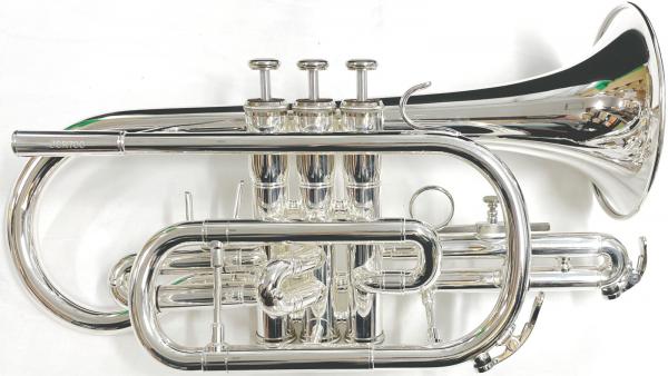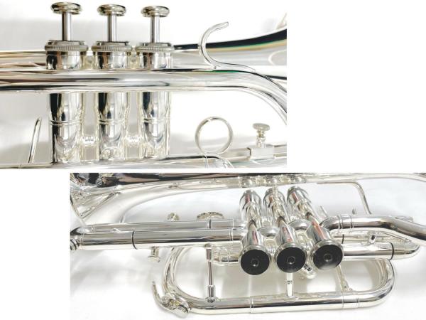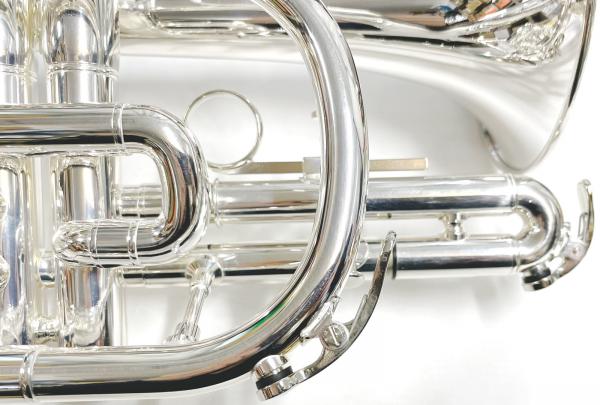 トランペットと同じ運指、音域を持ちますが、管の巻の状態などが異なり、トランペットよりも柔らかな音色です。フレーズの移り変わりも滑らかでゆったりとした演奏をお楽しみ頂けます。サイズが小さくなりますので小学生などの金管バンドなどでも取り入れられることがあります。