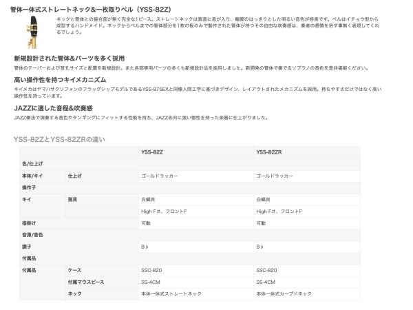 ・YSS-82ZRS...イエローブラス製、銀メッキ仕上げ、ネック一体式(カーブド)