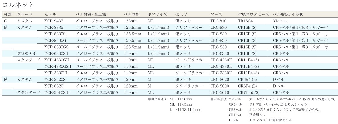 YCR-9435...ベルイエローブラス、銀メッキ仕上げ、MLボア