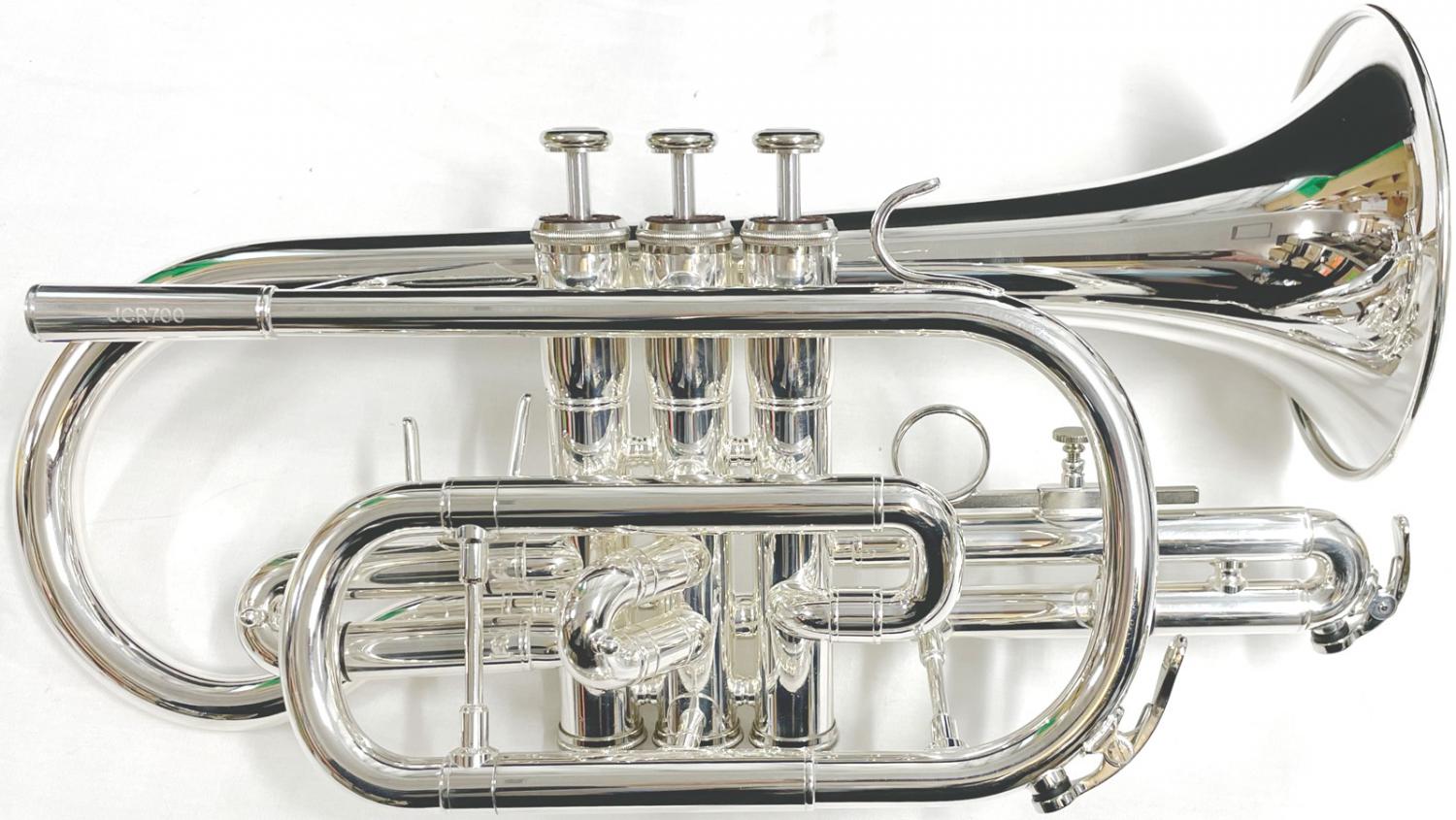 ■商品名  : JCR700S コルネット 銀メッキ イエローブラス 管楽器 Bb Cornet JCR-700S シルバー カラー BACH マウスピース セット 北海道 沖縄 離島不可