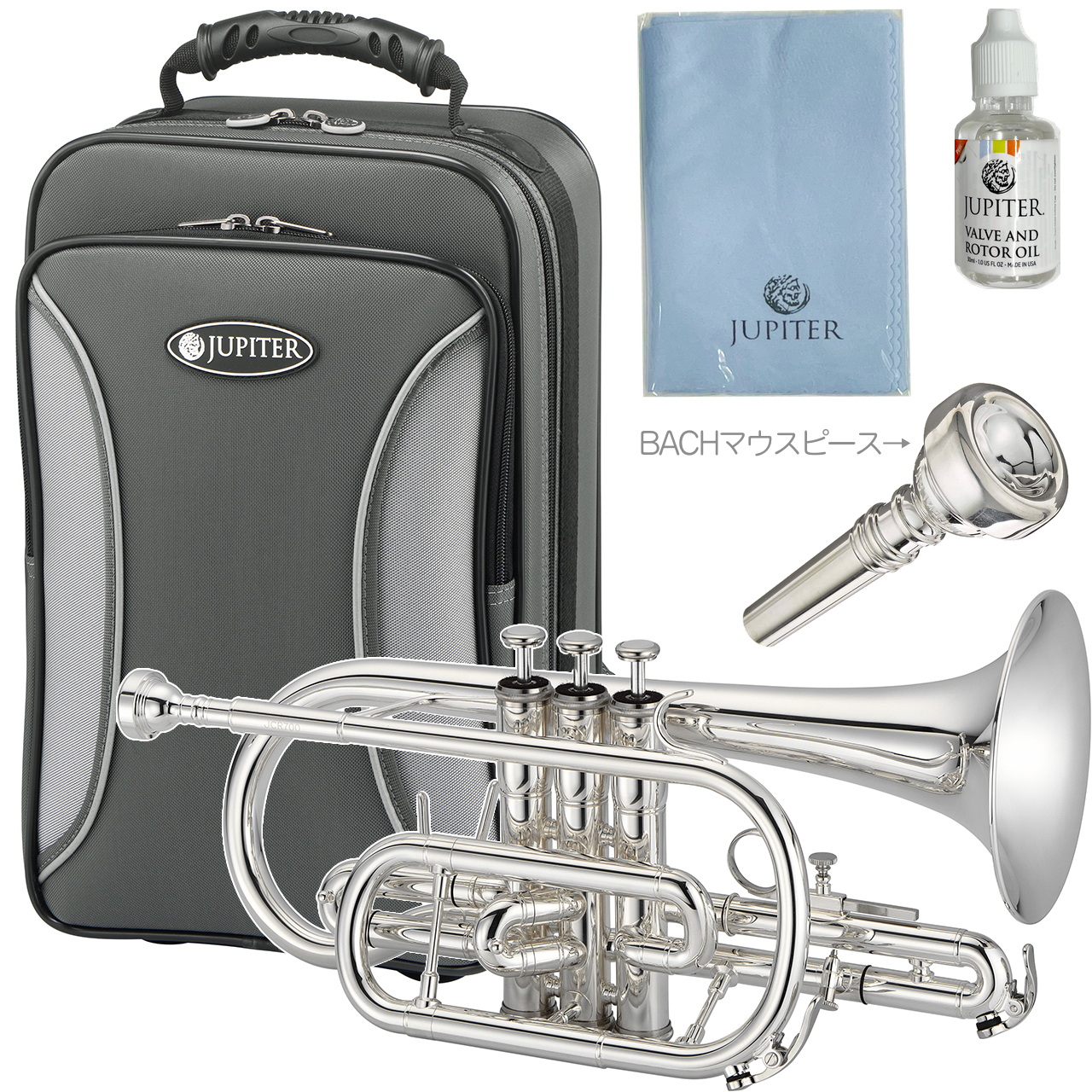 JUPITER ジュピター JCR700S コルネット 銀メッキ イエローブラス 管楽器 Bb Cornet JCR-700S シルバー カラー BACH マウスピース セット 北海道 沖縄 離島不可