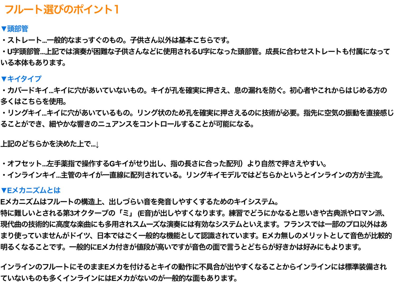 ☆Eメカニズム...フルートの構造上、出しづらい音を発音しやすくするためのキイシステム。特に難しいとされる第3オクターブの「ミ」 (E音)が出しやすくなります。