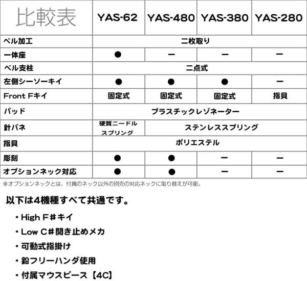 ※YAS-62(S)/YTS-62(S)は2021年11月時点の現行モデルおよび一部の旧モデルに互換性があります。